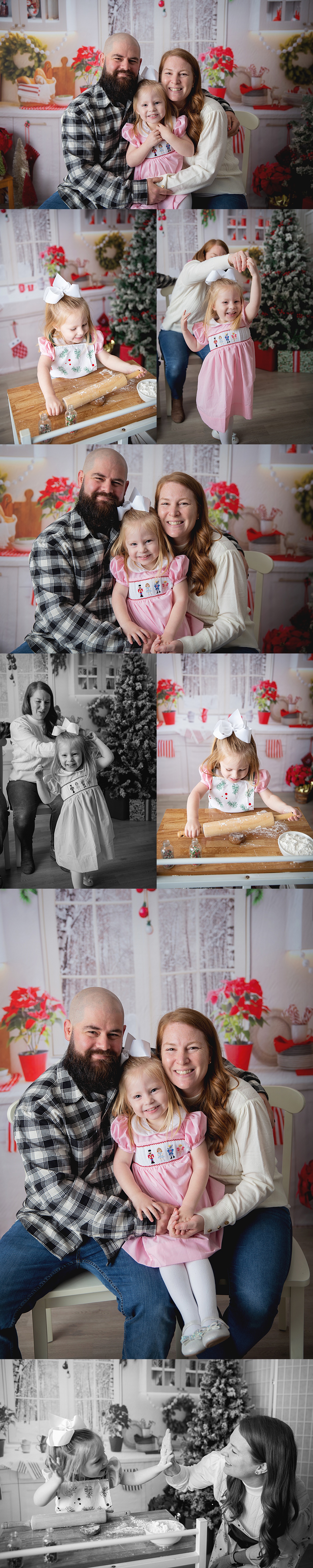 Another super fun and sweet session with Bonnie and her parents! She has already gotten so much bigger since our holiday session last year and the year before! This year we made cookies and boy did we have a blast!